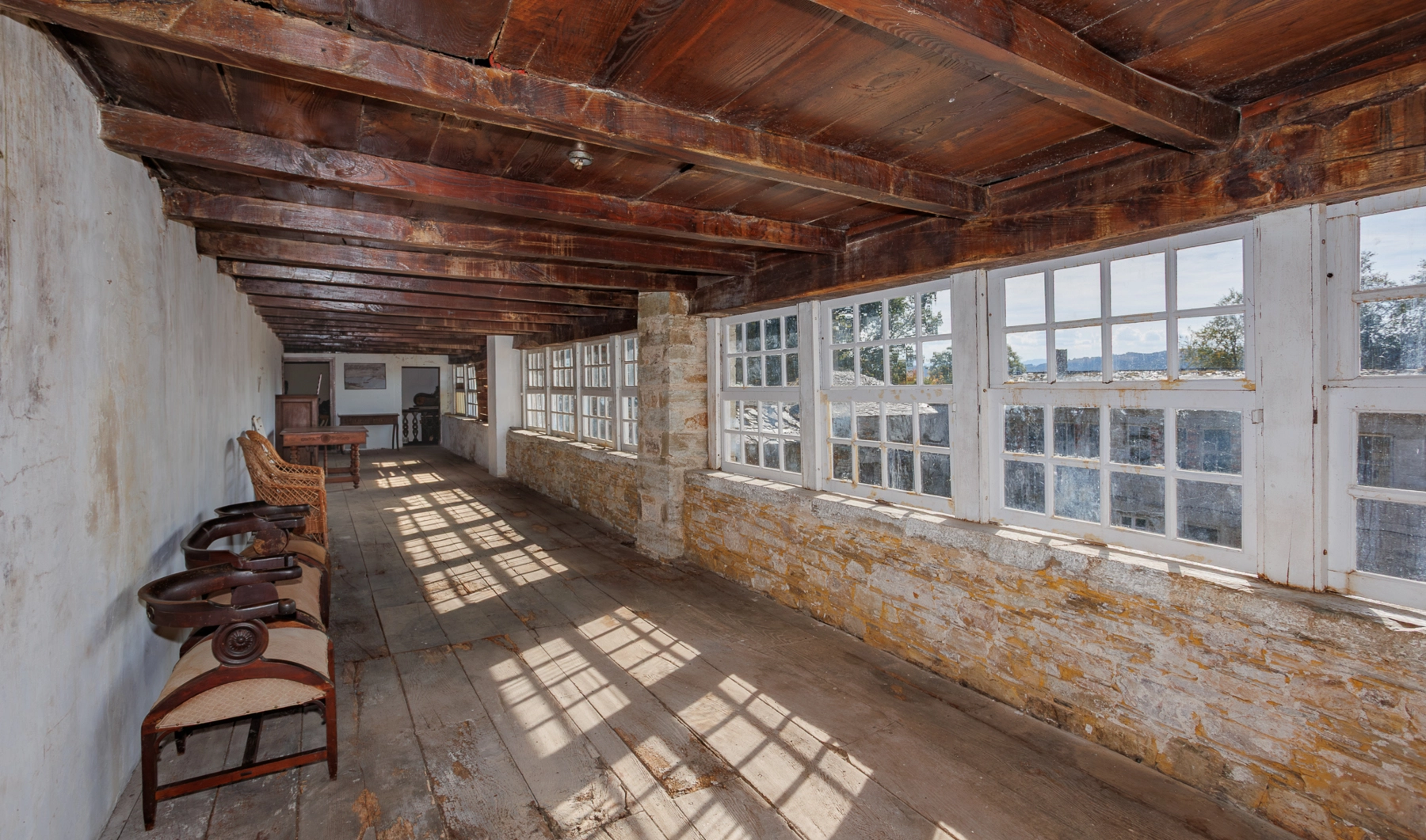 The arcaded structure beneath the gallery embraces one side of the courtyard, forming a highly attractive covered space, where its arches built with large stones stand out. This section includes a cellar area and stable area, as well as direct access to the chapel.