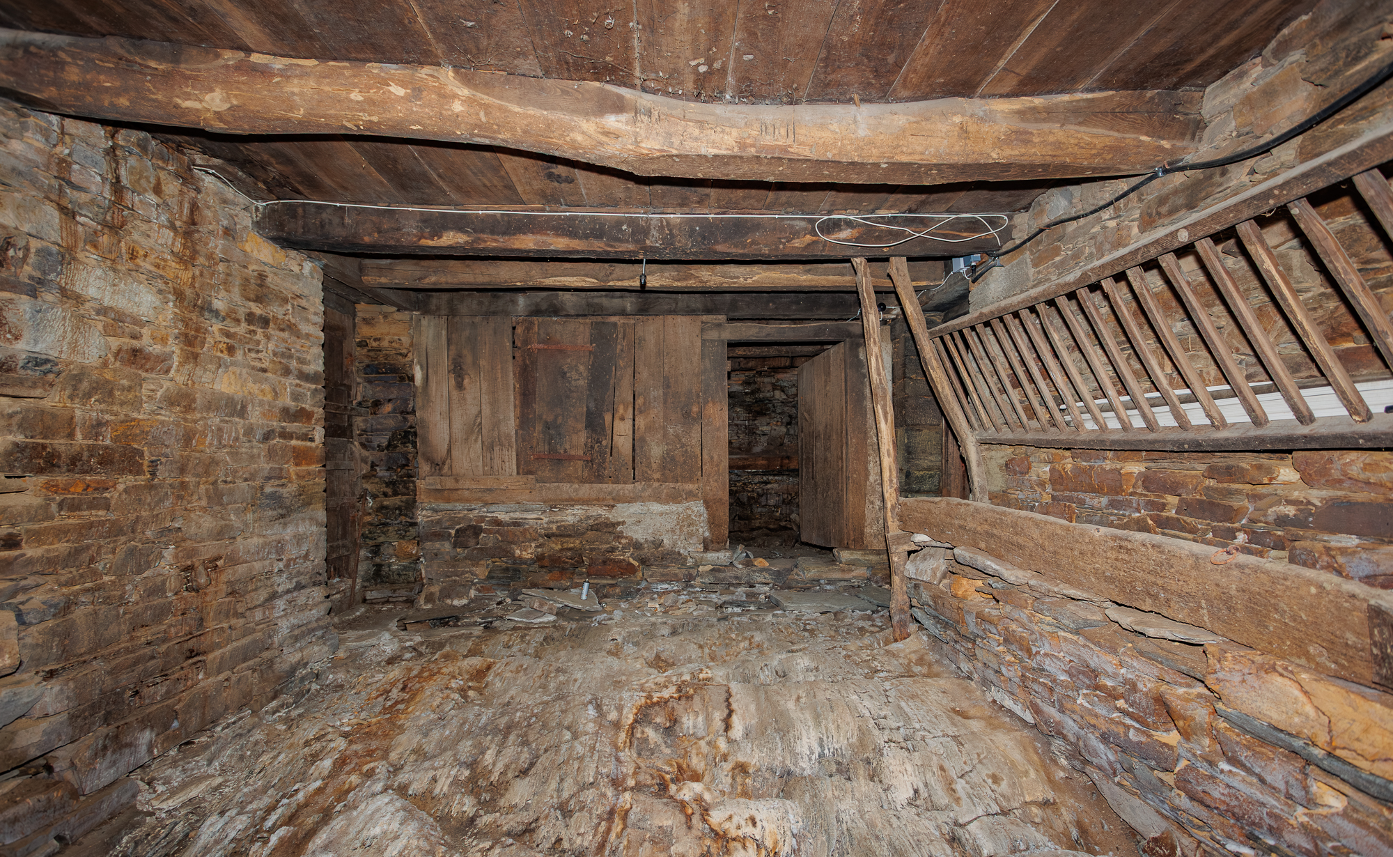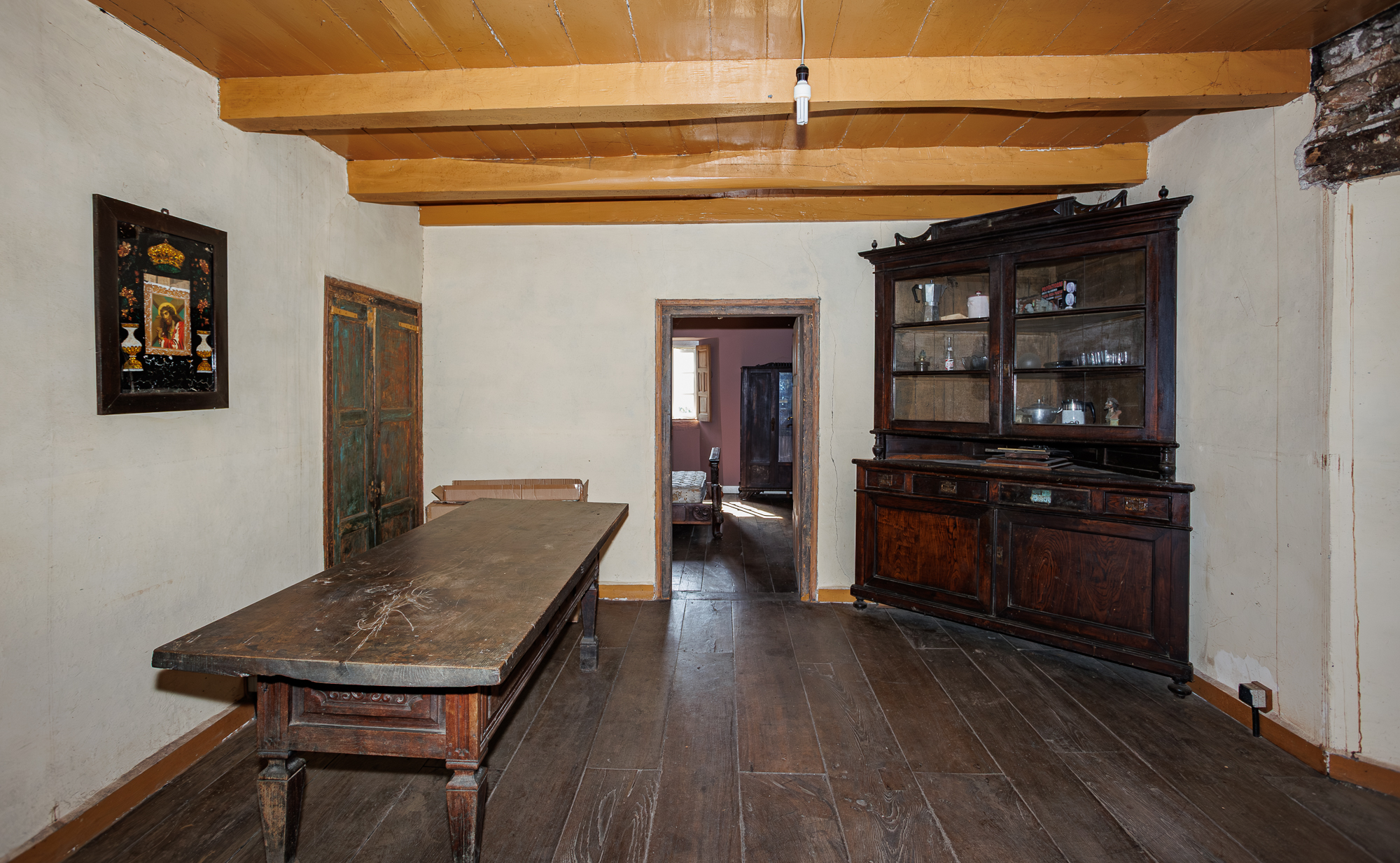 Here, a large kitchen with tiled floor and direct access outside creates a space full of charm, featuring a traditional wood-burning stove and a stone sink. The dwelling includes two large living rooms, five bedrooms and a bathroom, and connects with the wooden gallery that runs through the adjoining building. This large open space provides access to a workshop, the chapel's tribune and the attic, which includes a dovecote area.