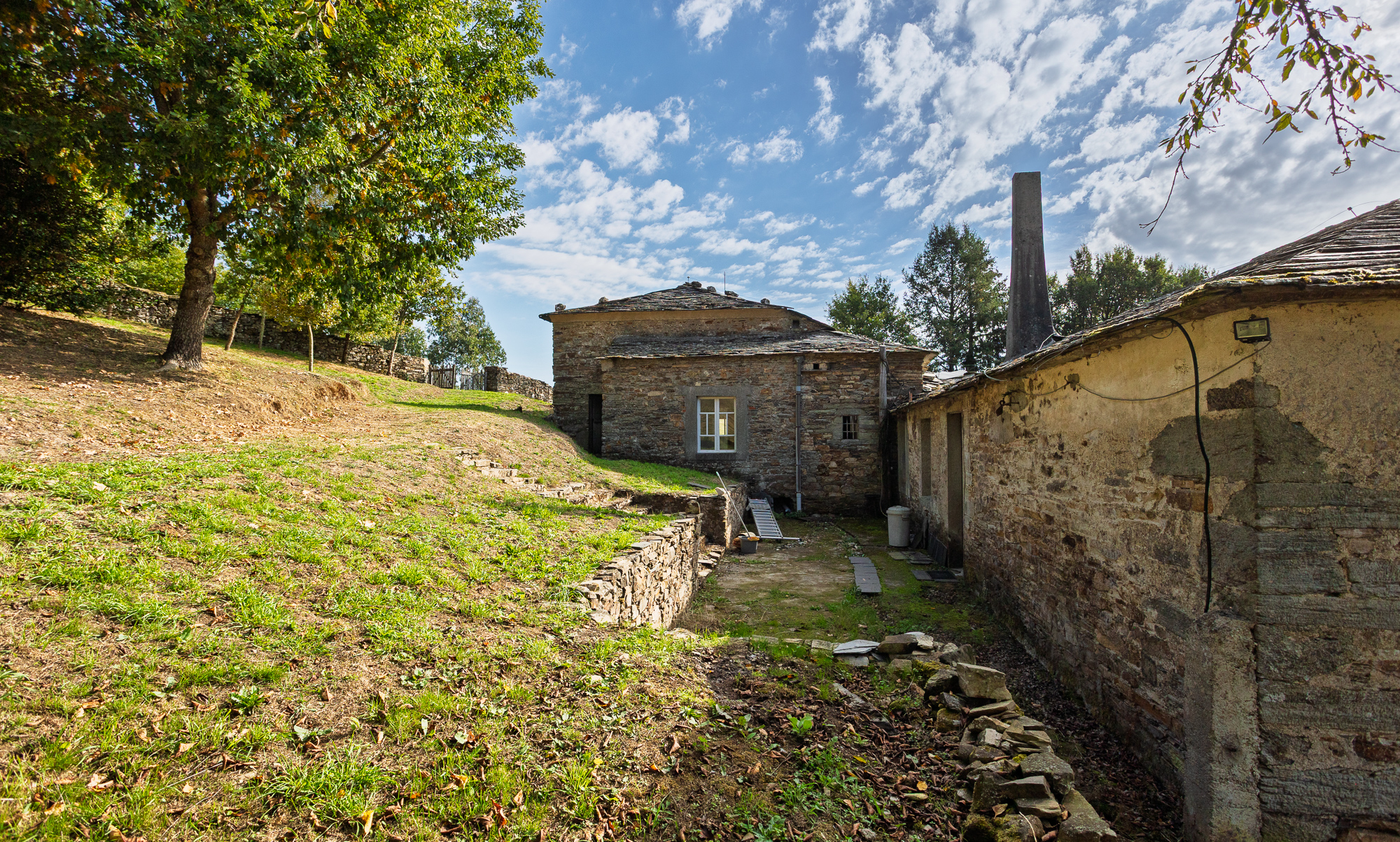 The more than 17,500 m² of land (4.3 acres) unfolds around the buildings, combining sloping areas with small flat surface areas. The estate includes native and fruit trees, as well as a traditional stone washhouse characteristic of rural Galician architecture.
