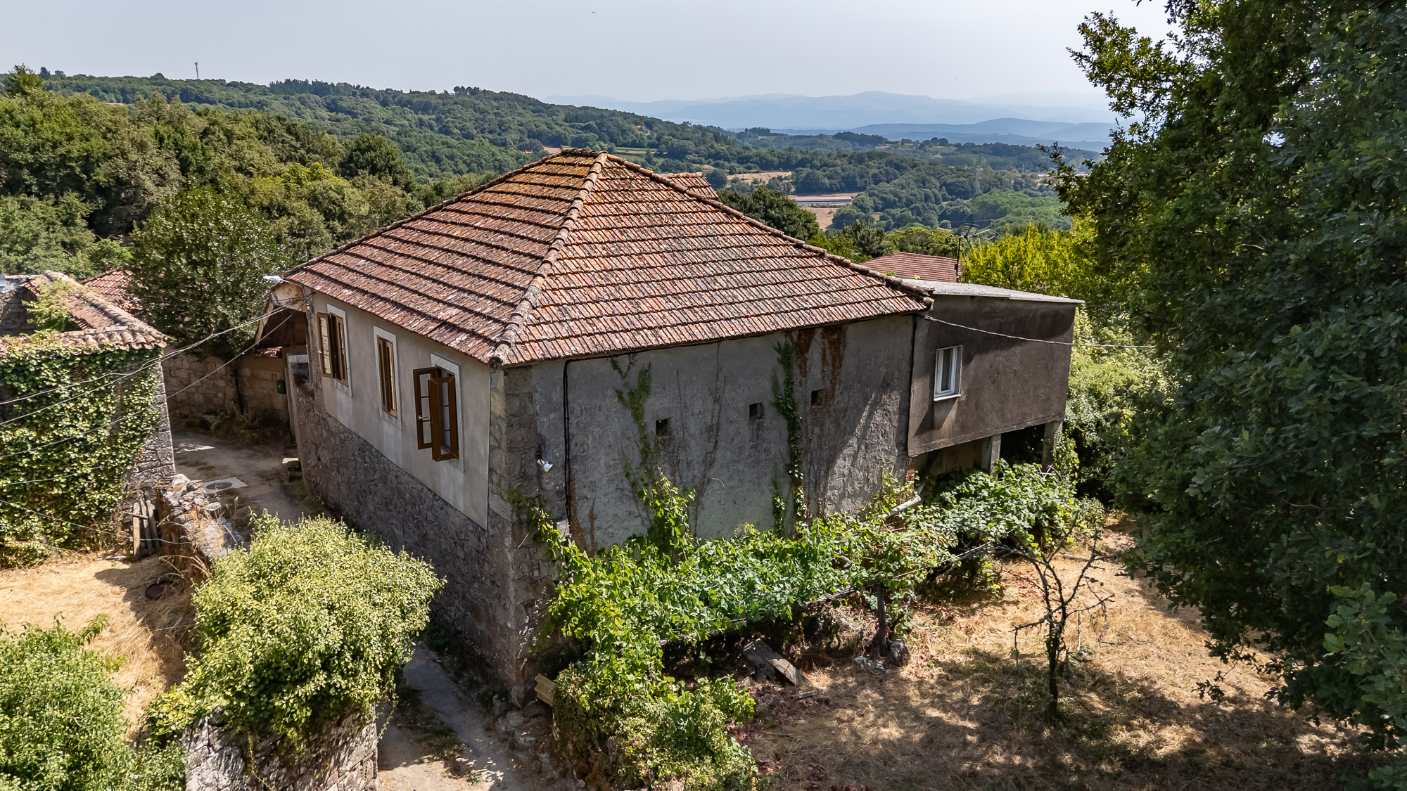 This property is located 5 km from Ferreira de Pantón and 10 km from Monforte de Lemos, in the heart of the Ribeira Sacra in Lugo. The property is situated in a small village crossed by the Camino de Santiago de Invierno, where houses cluster together creating a cohesive nucleus surrounded by forests and meadows.