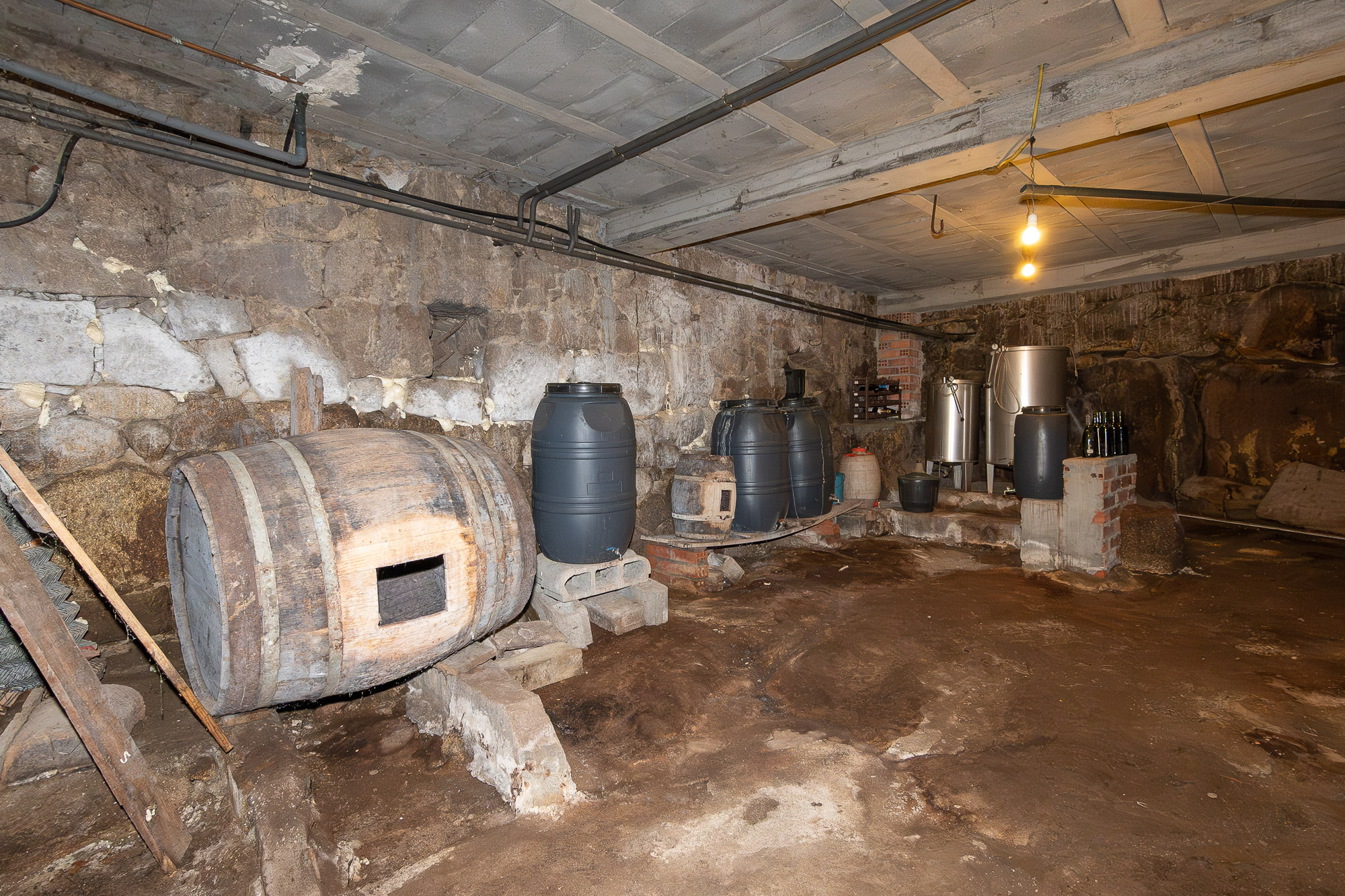 The second house, of smaller dimensions, is completely restored and also has two levels. The ground floor consists of a spacious and well-preserved cellar, with its original stone structure exposed.