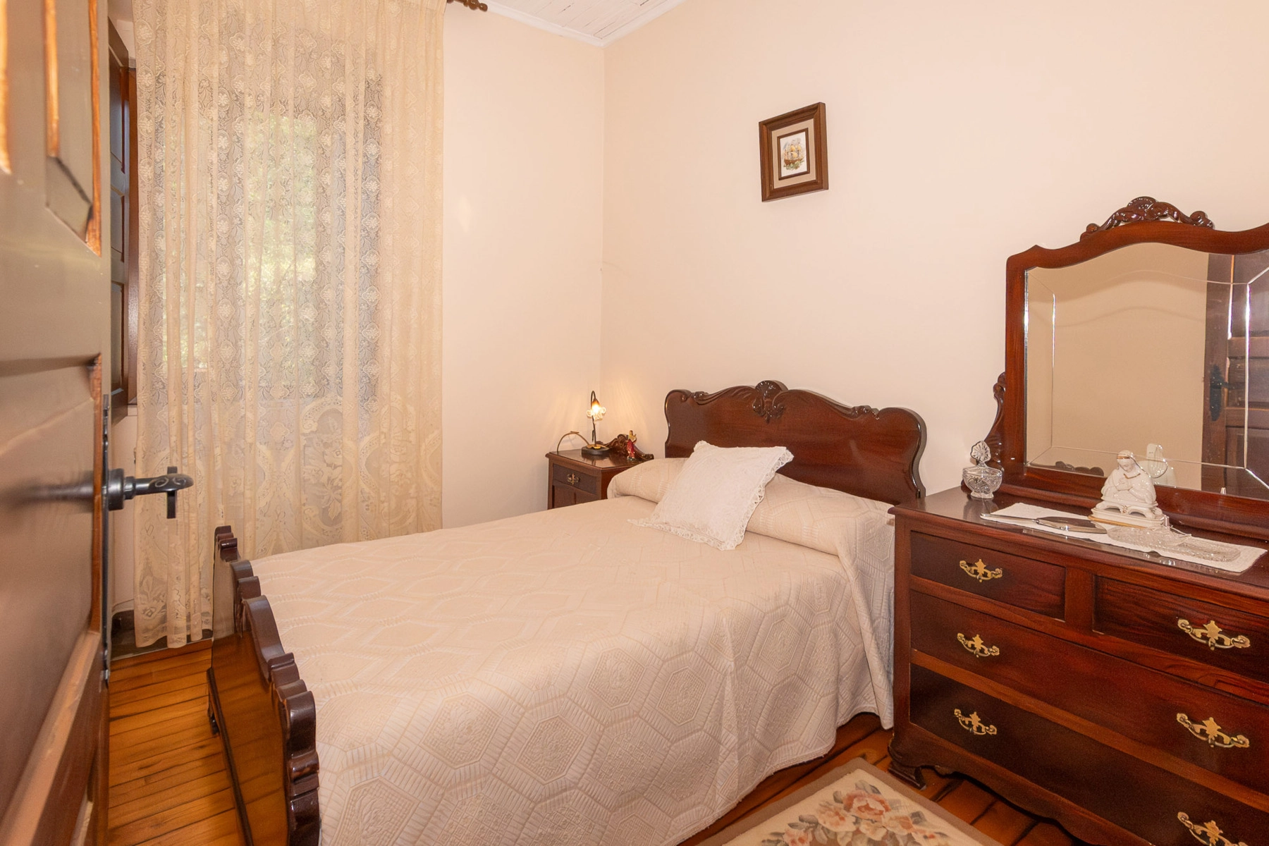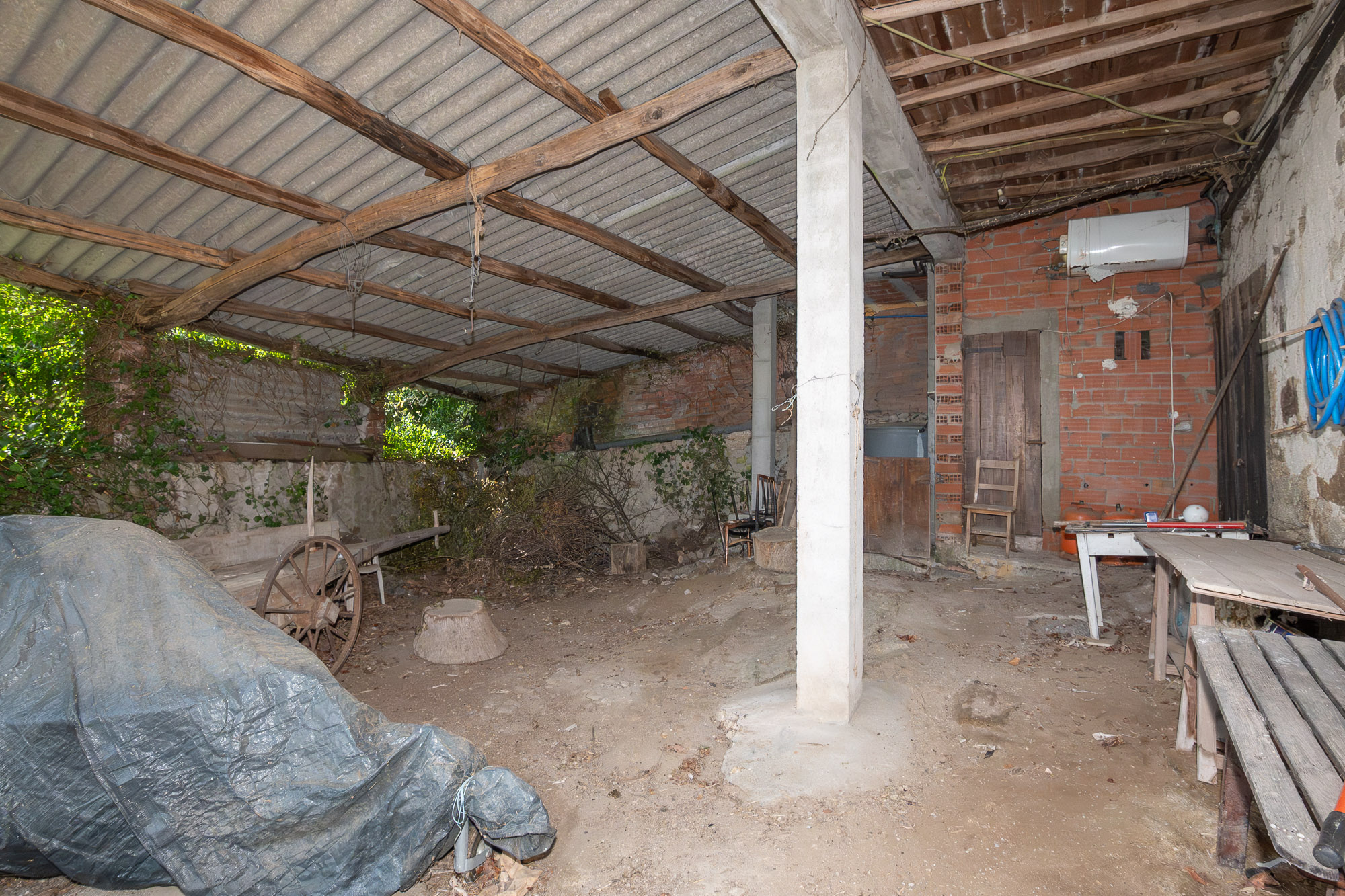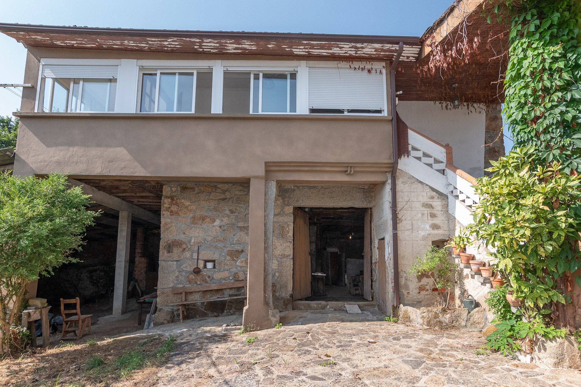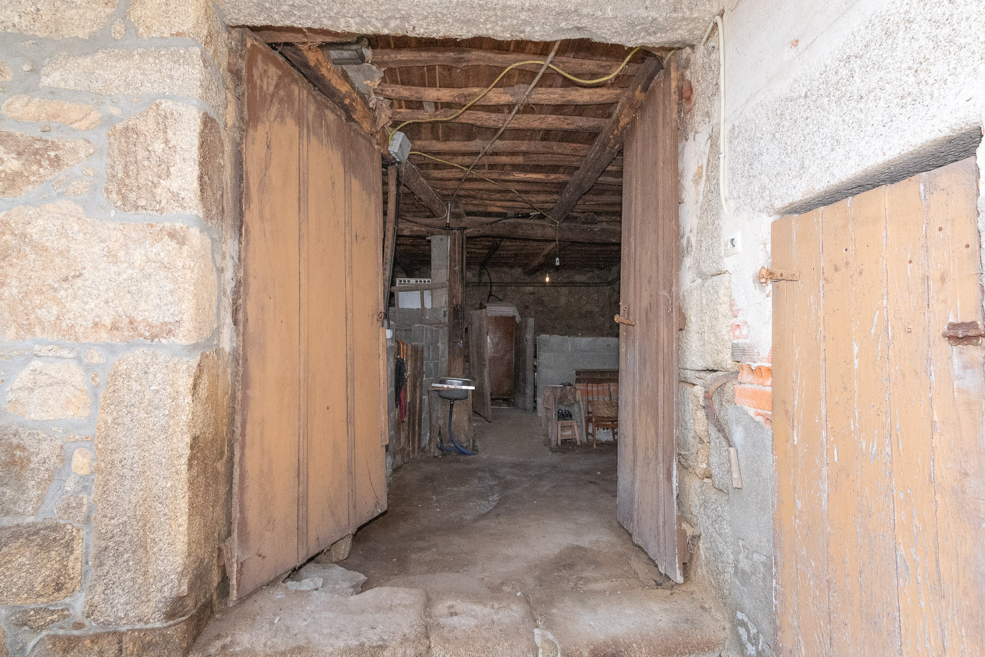 The main house, built approximately 80 years ago, is the larger of the two and is only accessible from inside the courtyard. It is distributed over two levels. The ground floor houses the old stables, a storage area and a large open alpendre of great size and height. These spaces offer enormous potential to be transformed, for example, into additional living space.