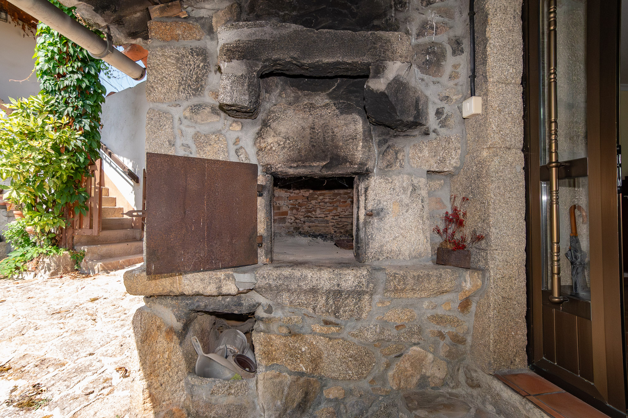 In addition, the house includes a traditional wood-fired oven located outside and accessible from the courtyard.