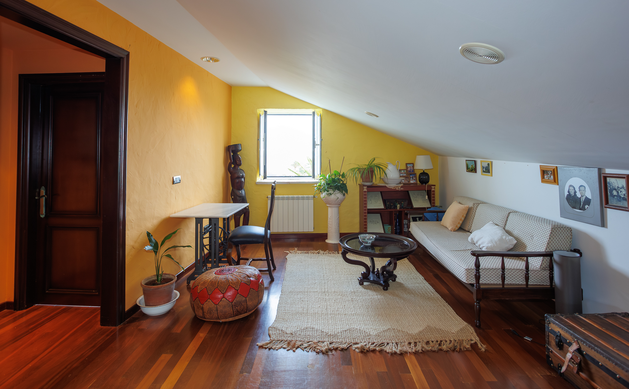The first floor has four bedrooms, the main one with an en suite bathroom. The remaining bedrooms share the other bathroom on this floor. The attic level offers an additional bedroom, a bathroom and a large sitting area.
