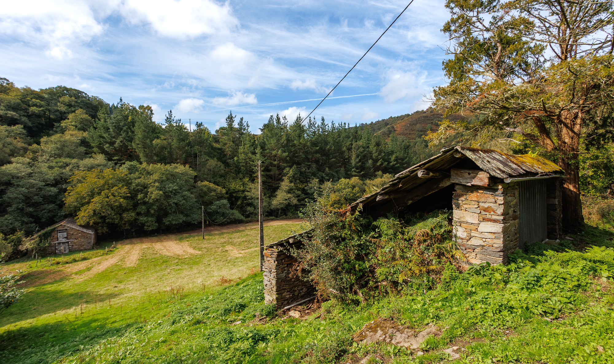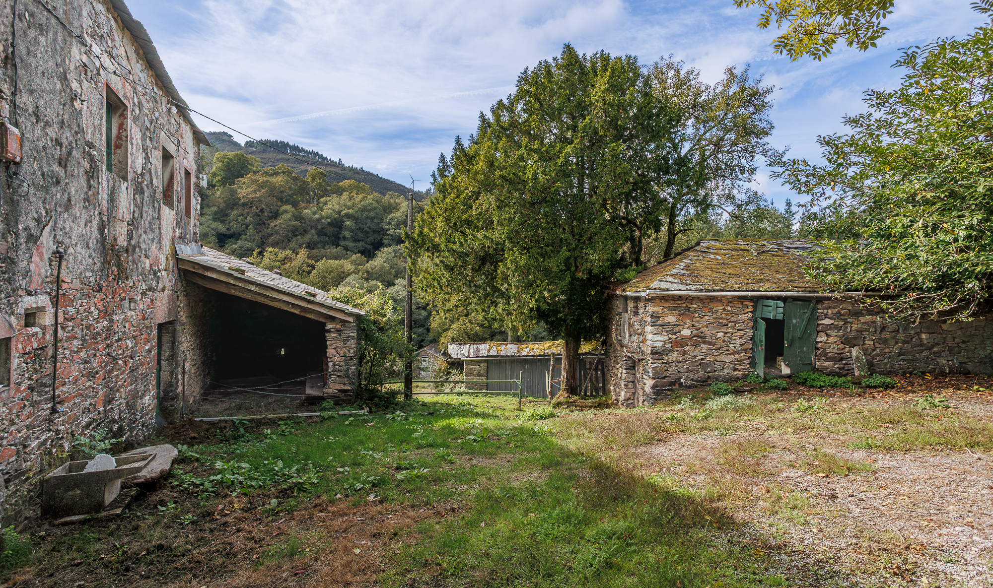 La casa principal, construida en 1902, conserva una estructura sólida y el carácter auténtico de la arquitectura rural gallega, con muros de piedra y tejado de pizarra. Aunque requiere reforma, parte del tejado ha sido renovado.