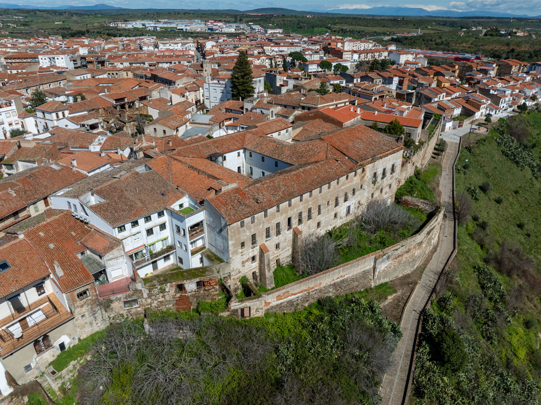 Este emblemático edificio se encuentra en pleno centro histórico de Coria, junto a la Catedral de Santa María de la Asunción y el Palacio Episcopal. Ubicado en una zona de alto interés monumental y turístico, el conjunto se asienta en una de las ciudades más antiguas de Extremadura, declarada Bien de Interés Cultural con categoría de Conjunto Histórico.