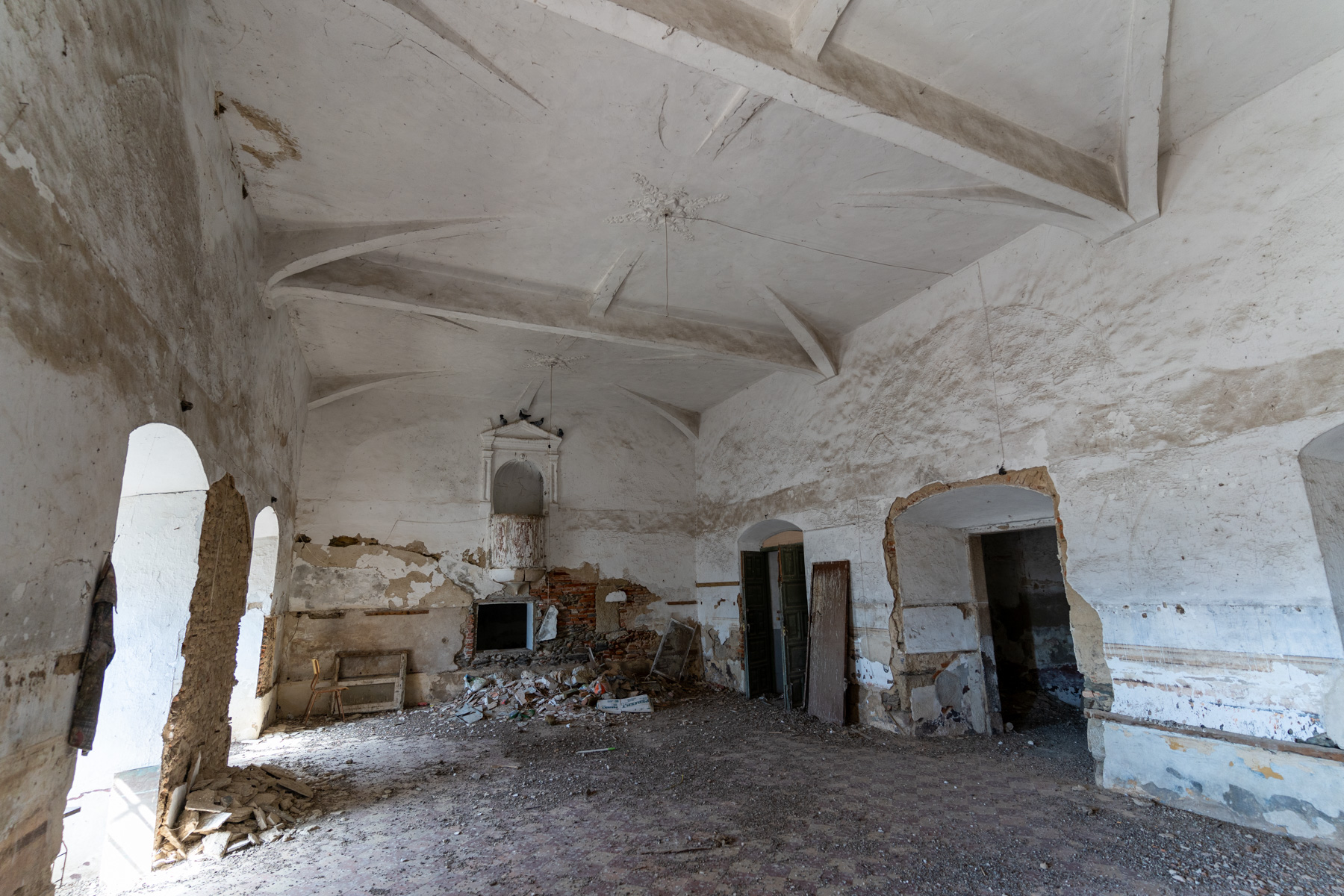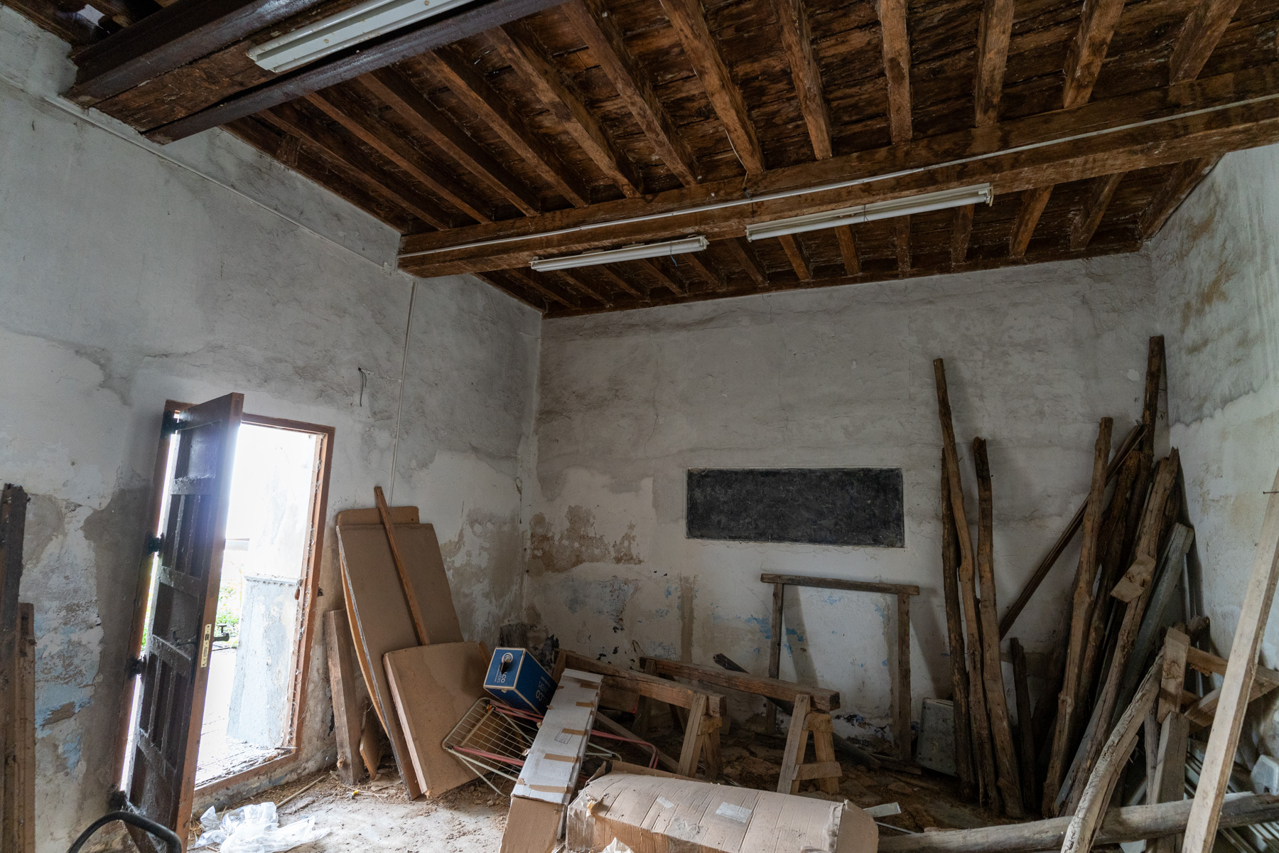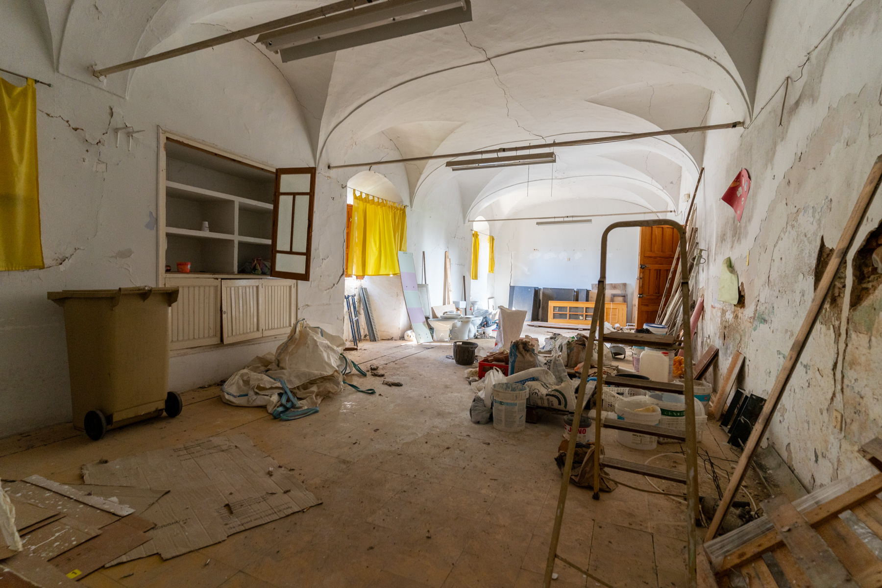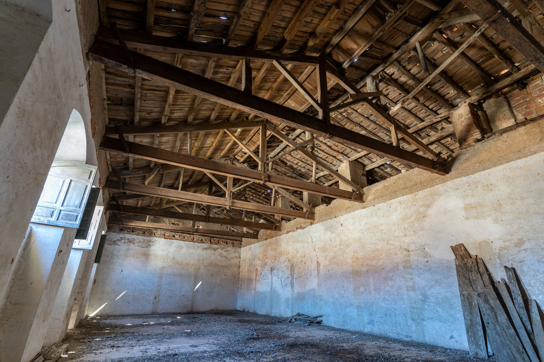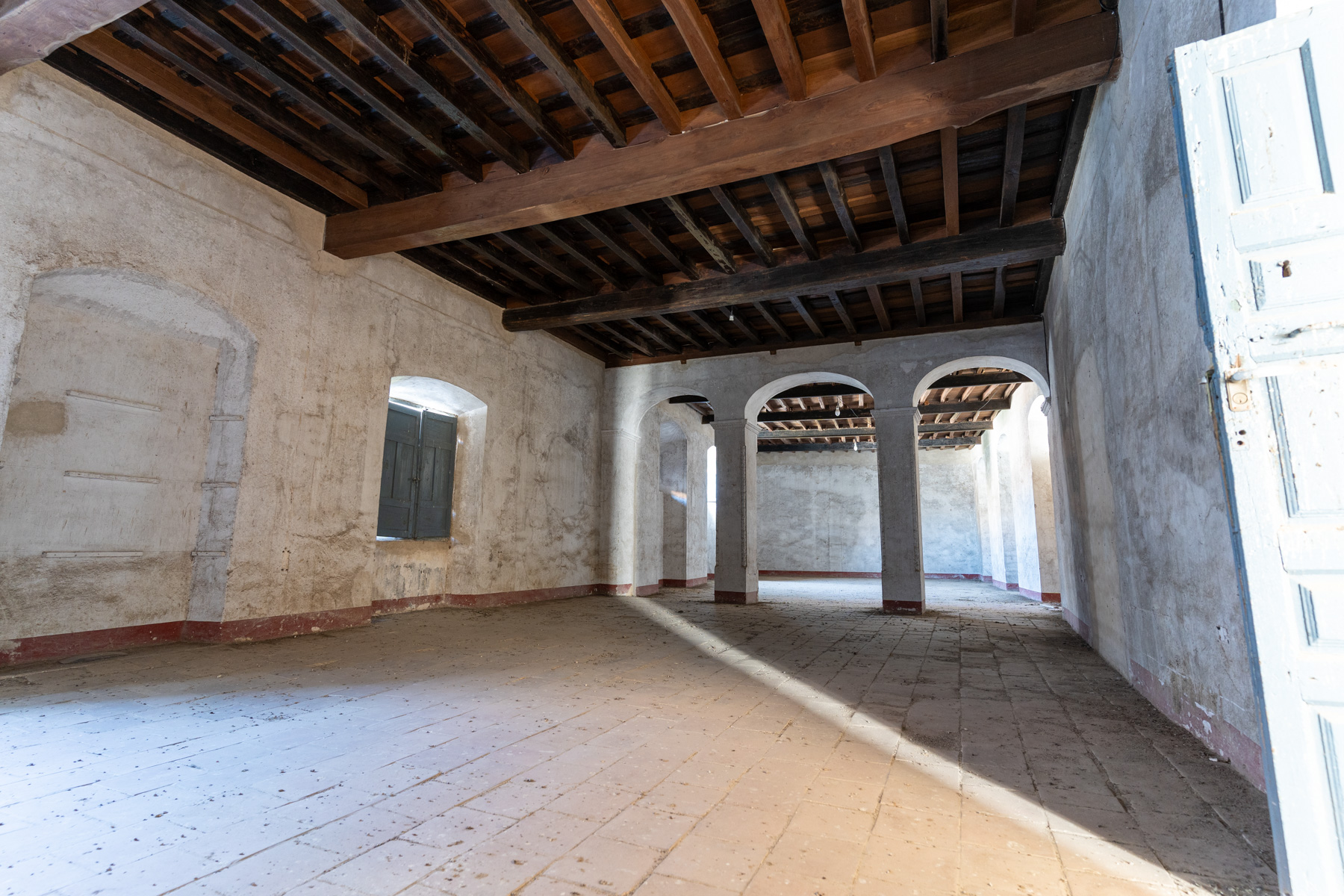 Sus espacios, aunque requieren restauración integral, mantienen elementos constructivos de gran valor como carpintería de madera original, techos con vigas vistas y suelos de distinta tipología que hablan de las diferentes épocas y usos del edificio.
