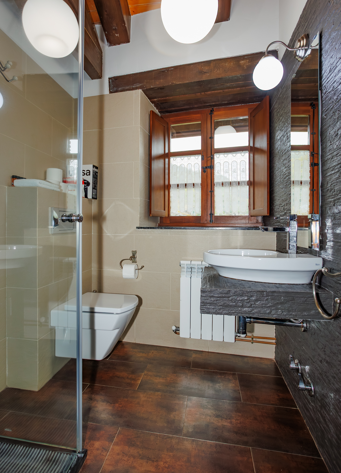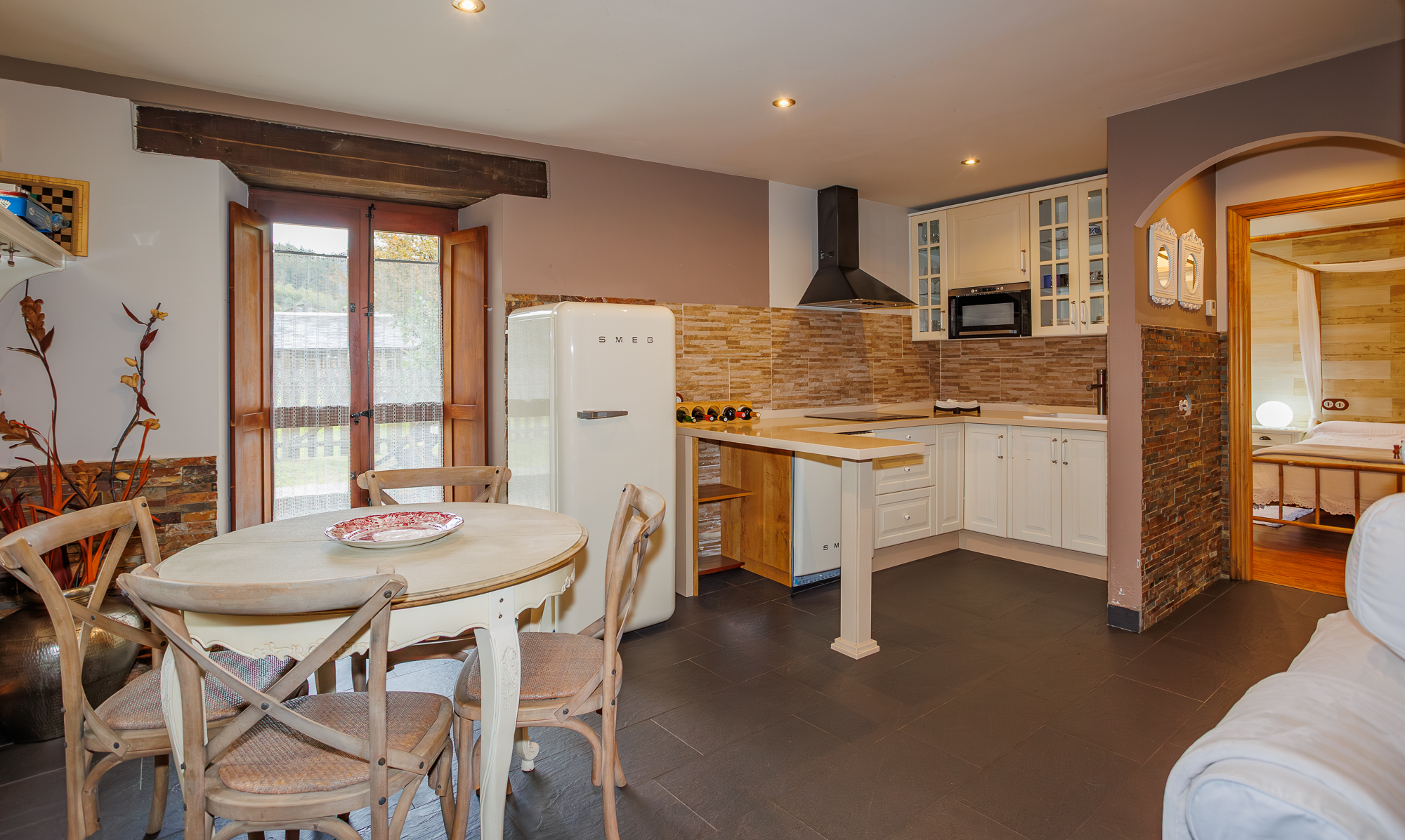 La primera casa, la más cercana al río, es la casa original y con más historia: una antigua forja que operó durante 100 años. Alberga un apartamento de dos pisos para 4 personas, equipado con salón-cocina con chimenea en la planta baja, y dos habitaciones en la planta superior, una con cama de matrimonio y otra con dos camas individuales. Dispone también de un cuarto de baño con ducha.