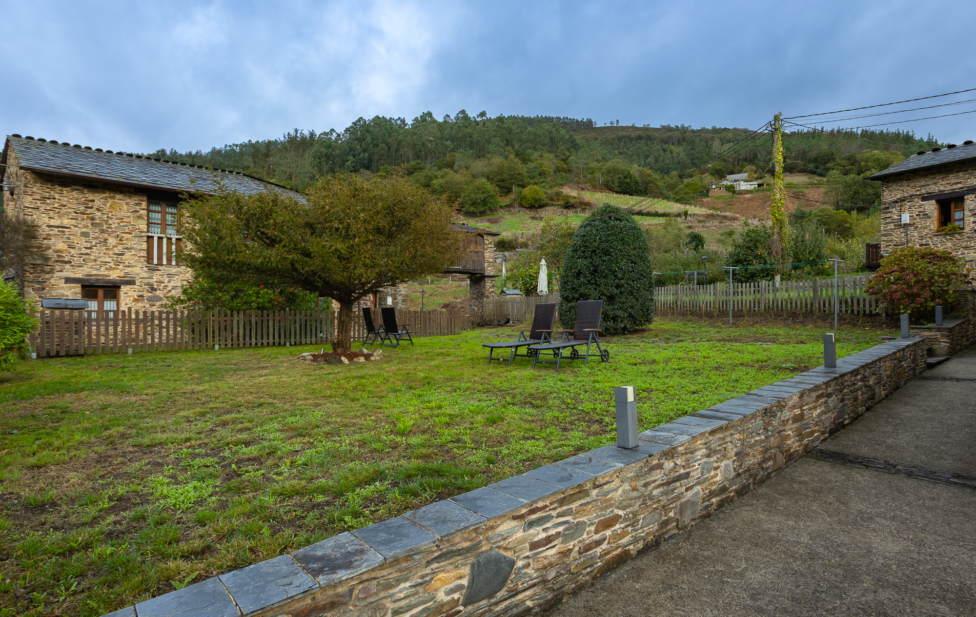 La segunda casa se sitúa a pocos metros de la primera. Es una construcción de dos alturas que alberga un apartamento independiente en cada planta, con capacidad para 2 huéspedes cada uno. Junto a la casa se despliega un amplio jardín con varias zonas de estar al aire libre, y una pequeña caseta que sirve de recepción y zona de planchado.