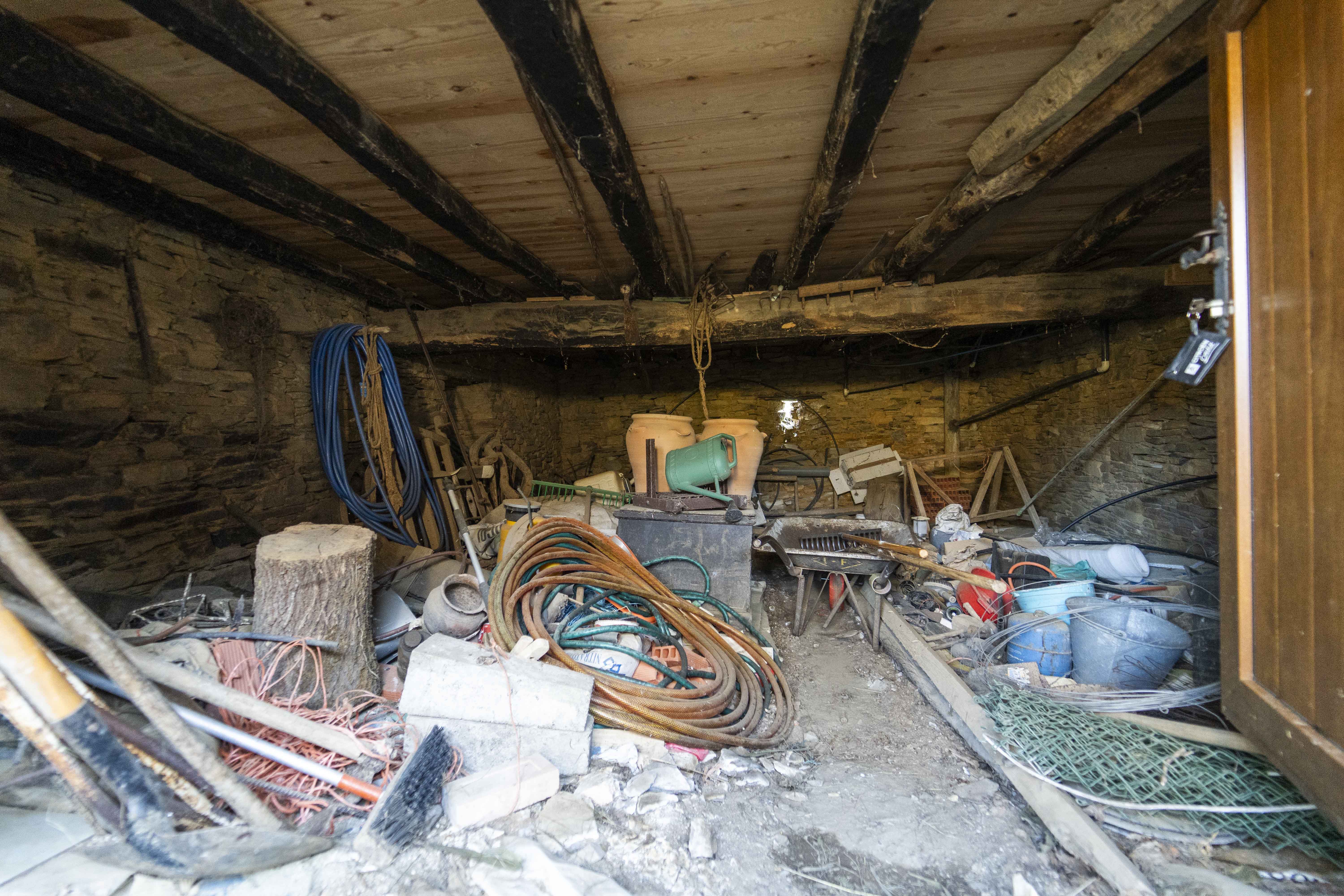 La zona pendiente de reforma se encuentra unos escalones más arriba que el resto. Cuenta con un cuarto de baño completo y una espaciosa habitación adicional, y está conectada con la zona reformada. Bajo esta sección se encuentran las antiguas cuadras, accesibles desde el exterior, un espacio diáfano de baja altura que podría habilitarse para diferentes usos.