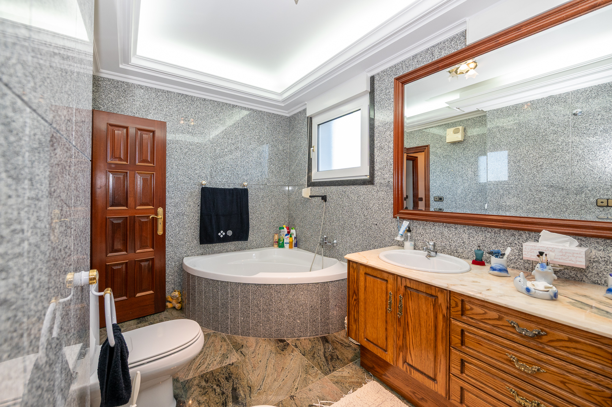La planta baja alberga un amplio garaje diáfano con capacidad para varios vehículos, cuyo acceso está estratégicamente situado frente al portón automático de entrada a la finca. Este espacio incluye un cuarto donde se encuentra la caldera de calefacción, utilizado también como almacén-taller, otro cuarto utilizado como bodega, un aseo con ducha y un acceso directo a la piscina de la parte trasera.