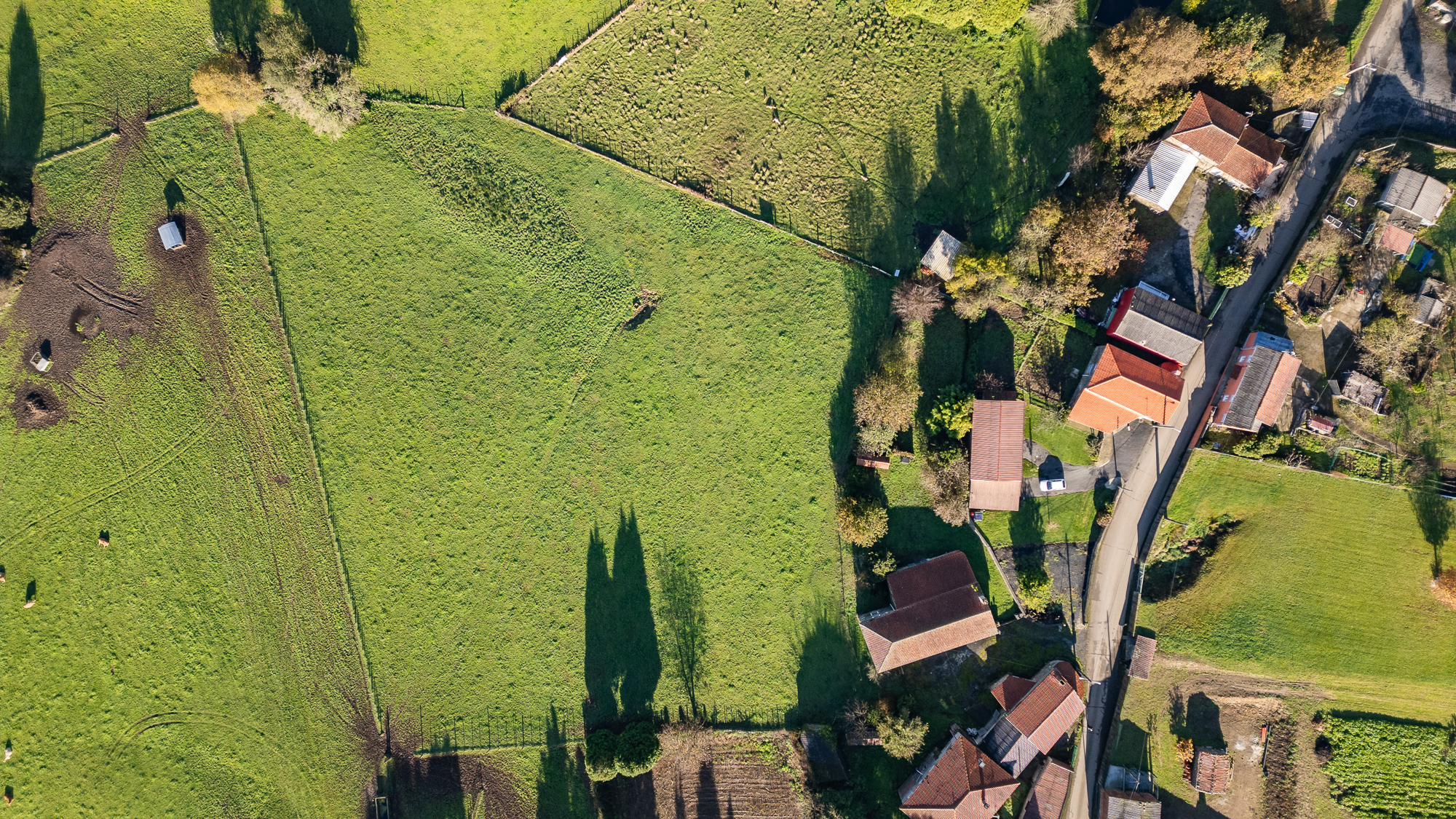 Casi una hectárea de terreno se extiende desde las construcciones, conformando una gran parcela despejada en ligera pendiente que ofrece vistas privilegiadas al paisaje.
