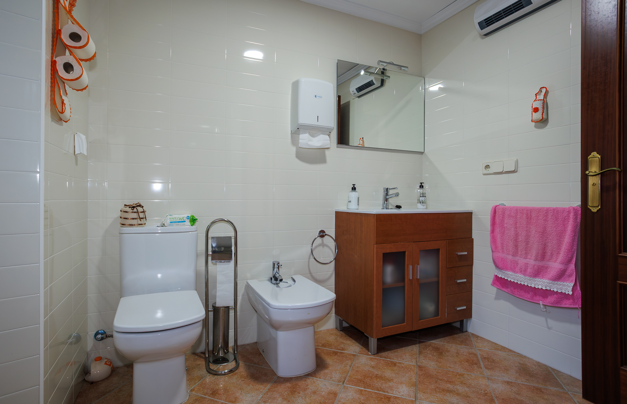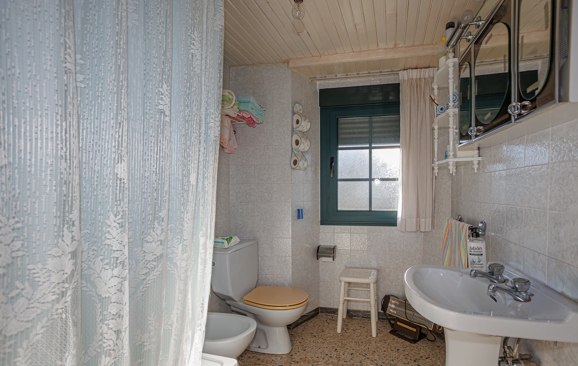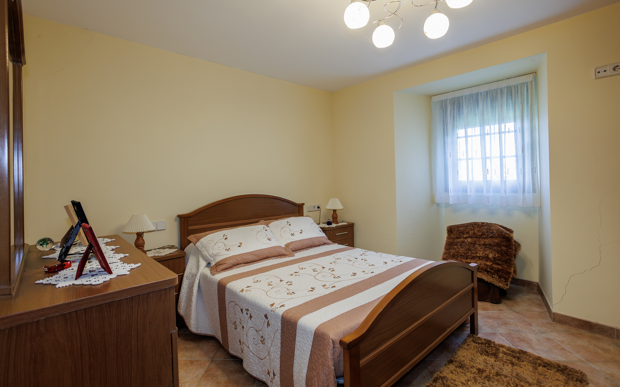 Bajando unas escaleras desde el hall de entrada se accede a un nivel inferior en el que se encuentra una salita de estar, una habitación con cama de matrimonio y un cuarto de baño con ducha. La planta superior alberga 4 habitaciones y un cuarto de baño con bañera, y su posición elevada permite disfrutar de estupendas vistas al campo.