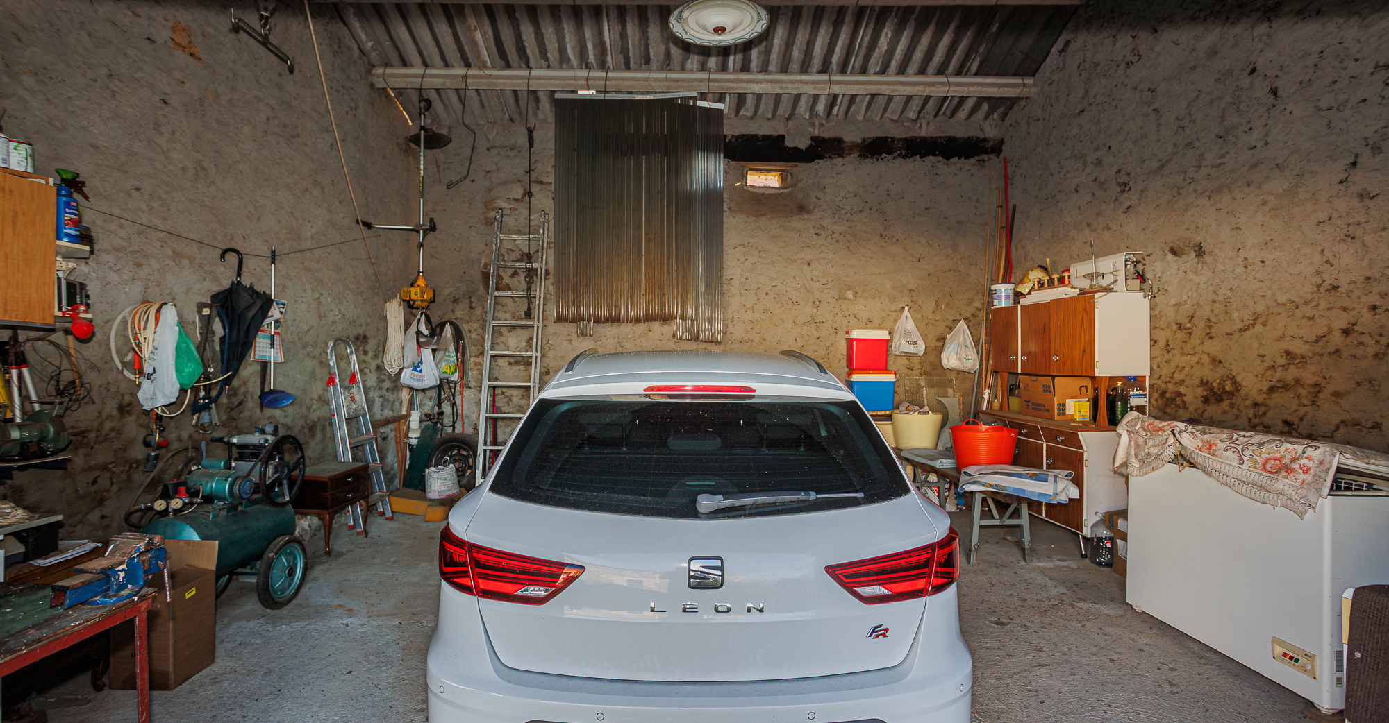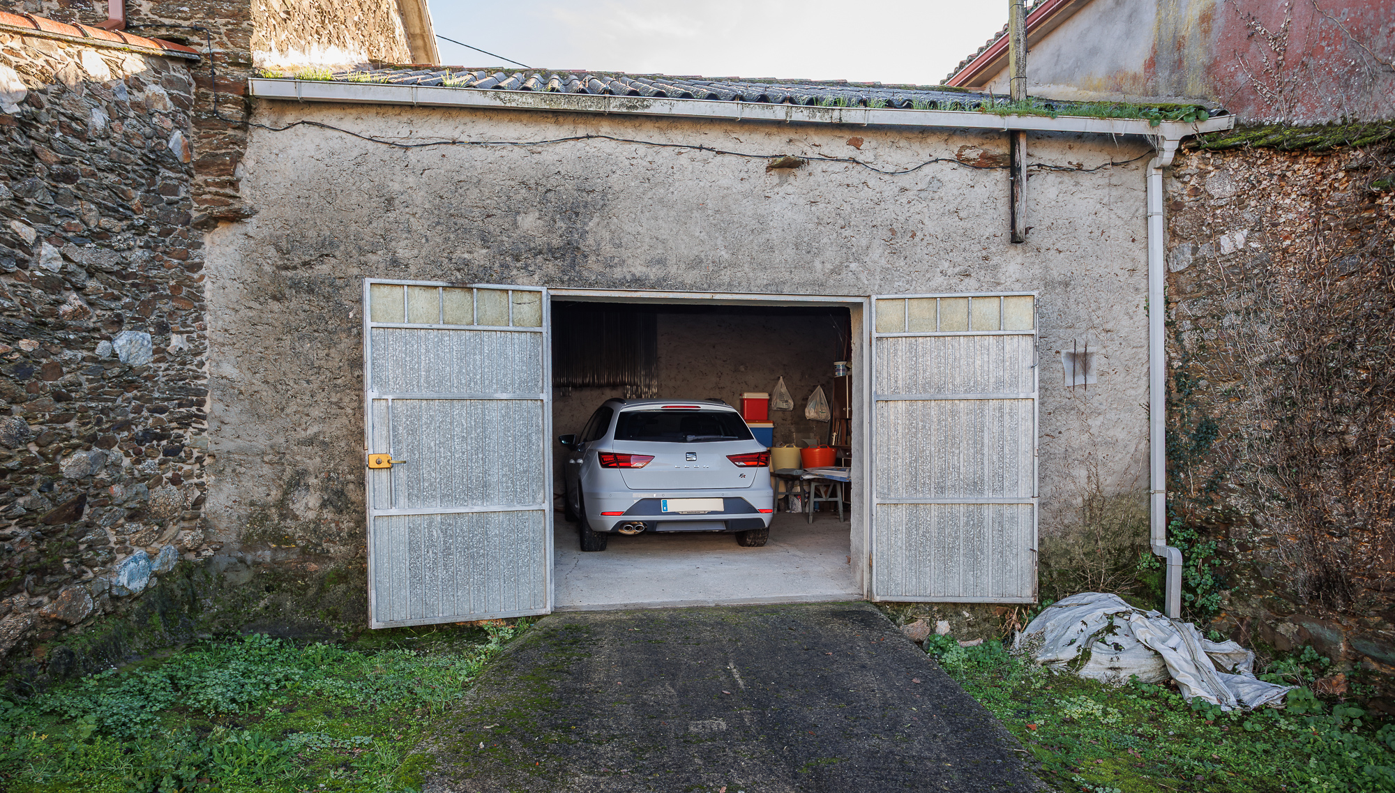 El alpendre, una construcción de piedra anexa a la casa, ofrece un espacio de almacenamiento adicional que es accesible desde el interior y el exterior de la vivienda.