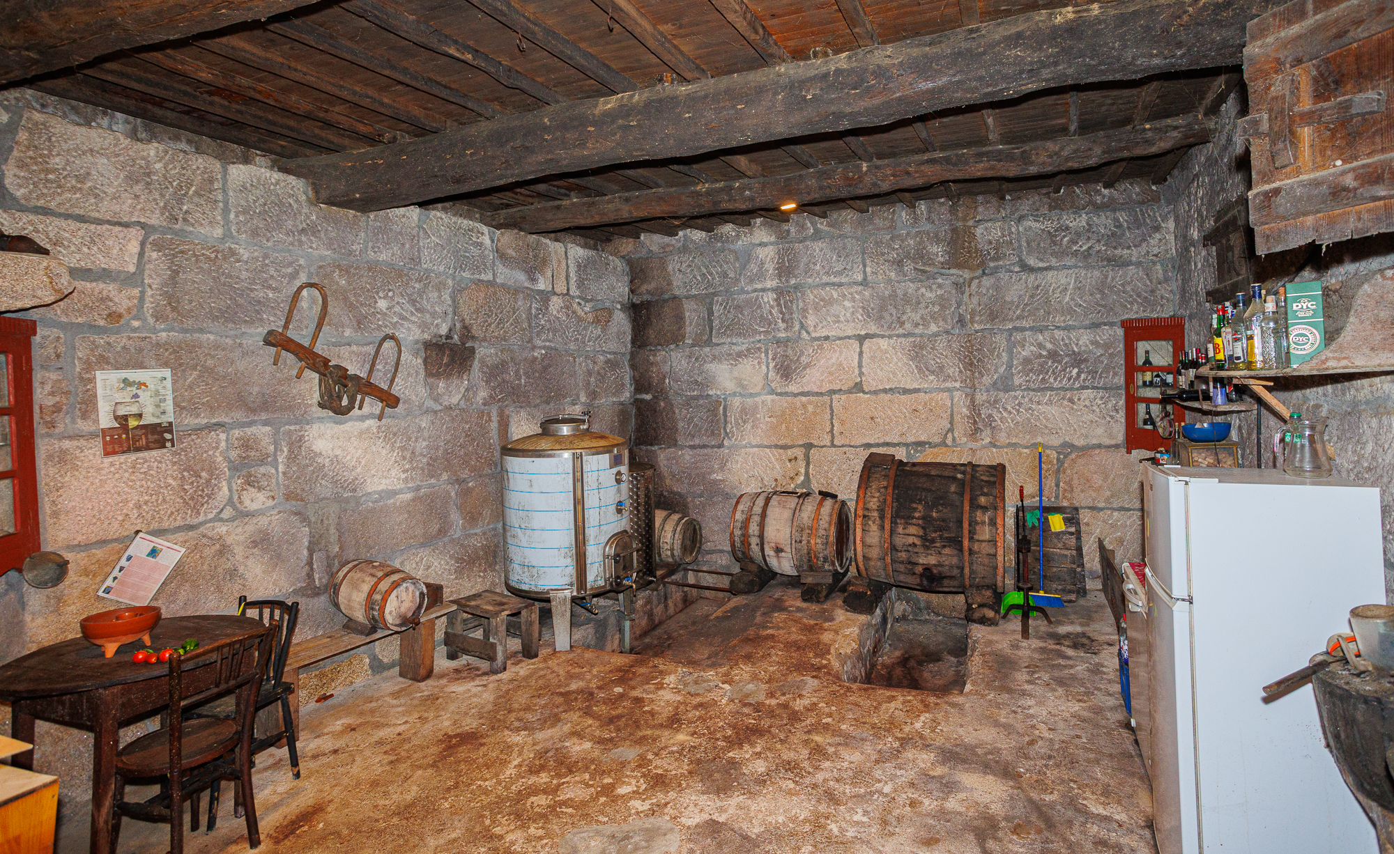 Anexa a la casa principal se encuentra la bodega, una construcción tradicional que conserva su encanto rústico con vigas de madera vista y muros de piedra originales, equipada con los elementos necesarios para el almacenamiento de vino.