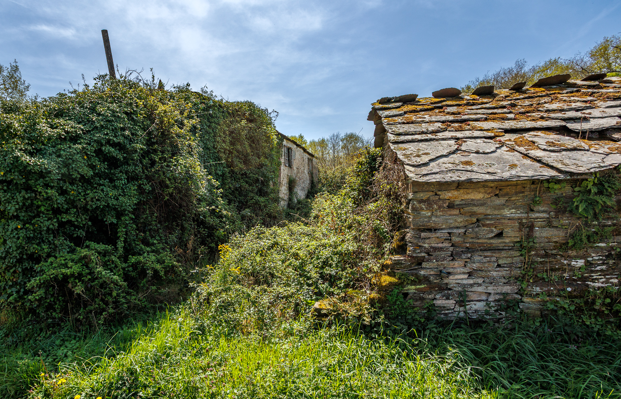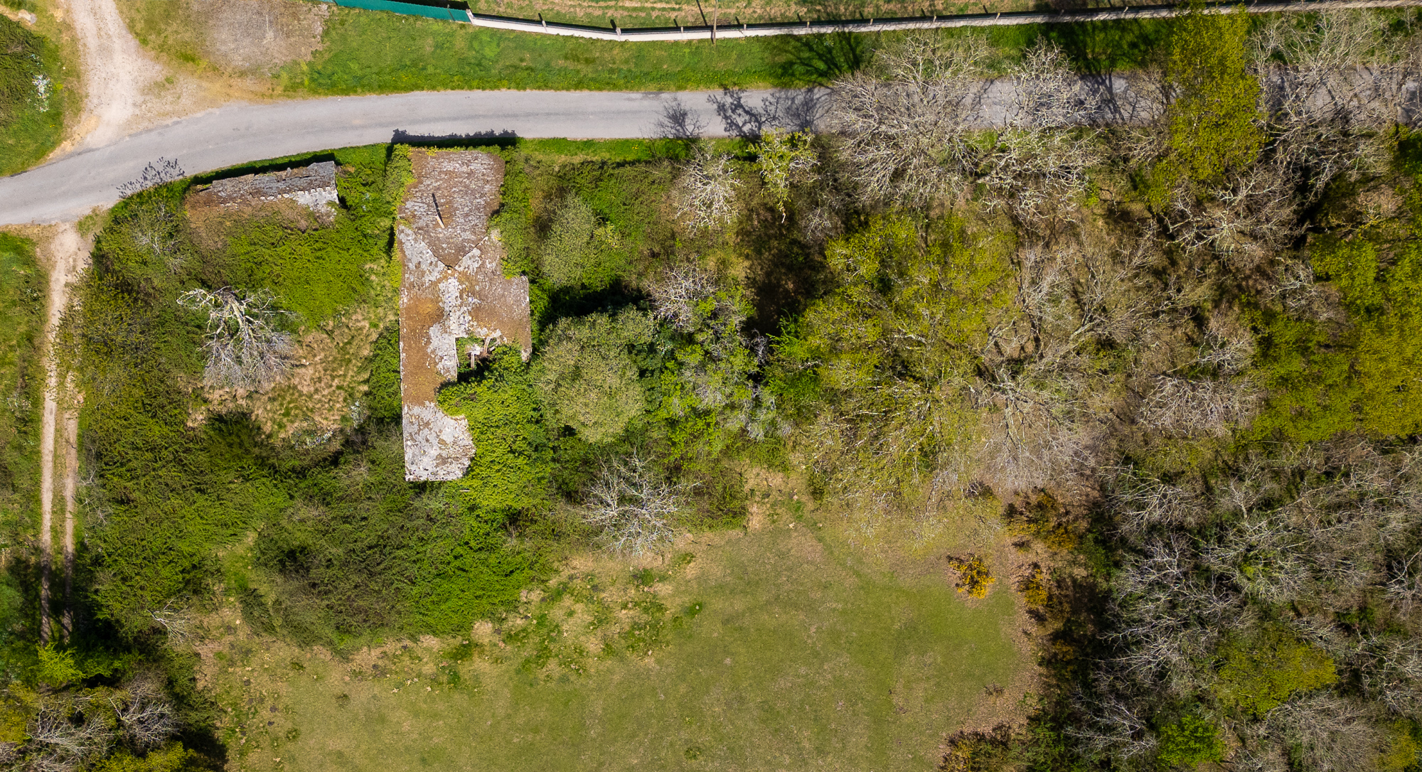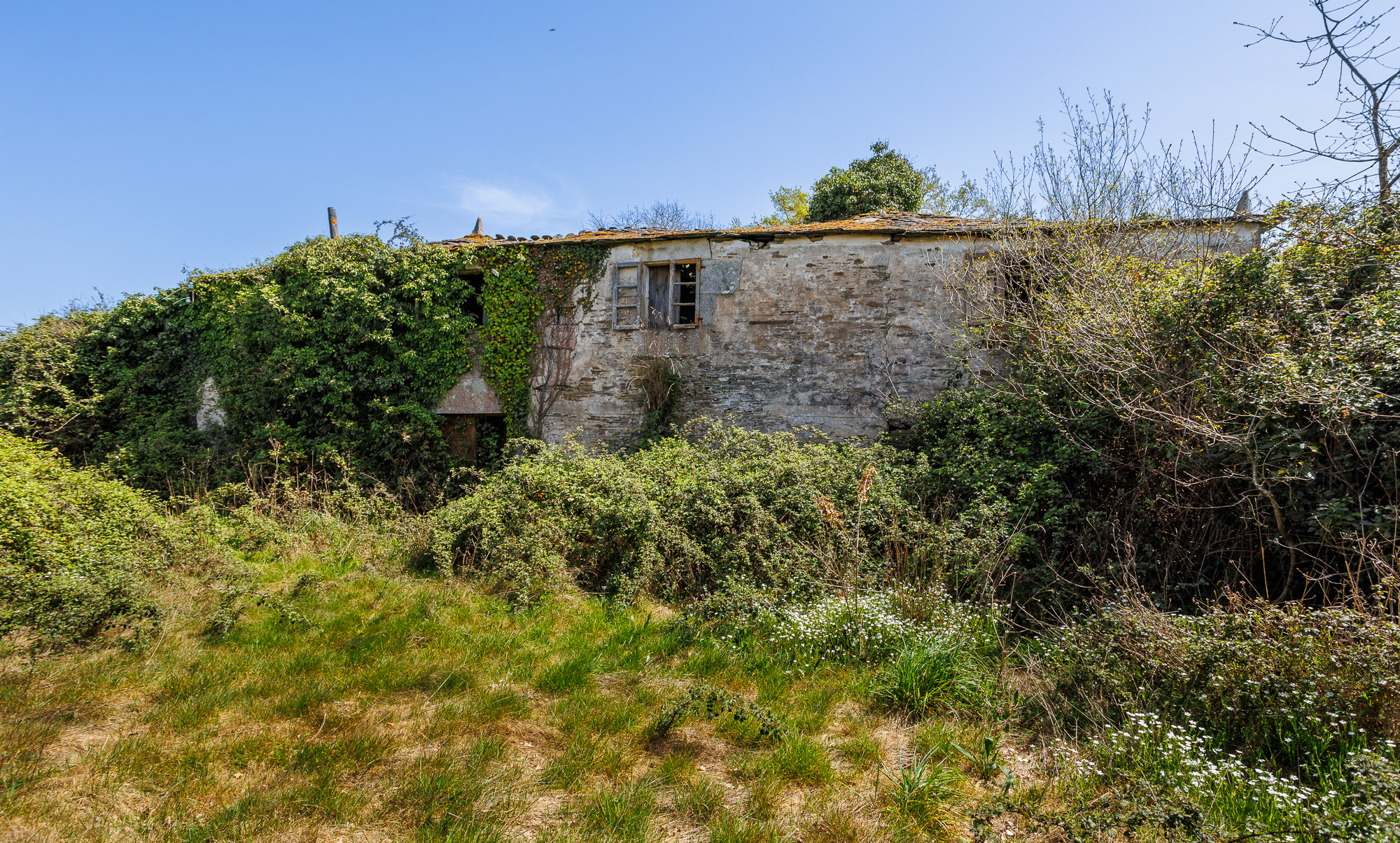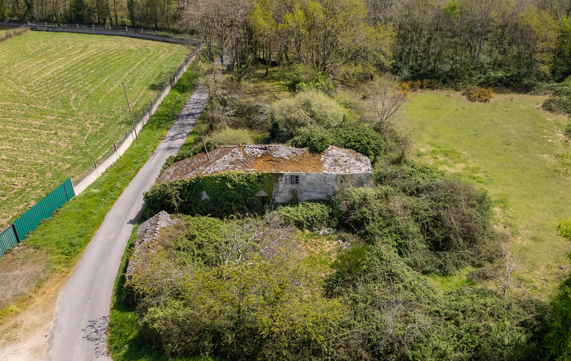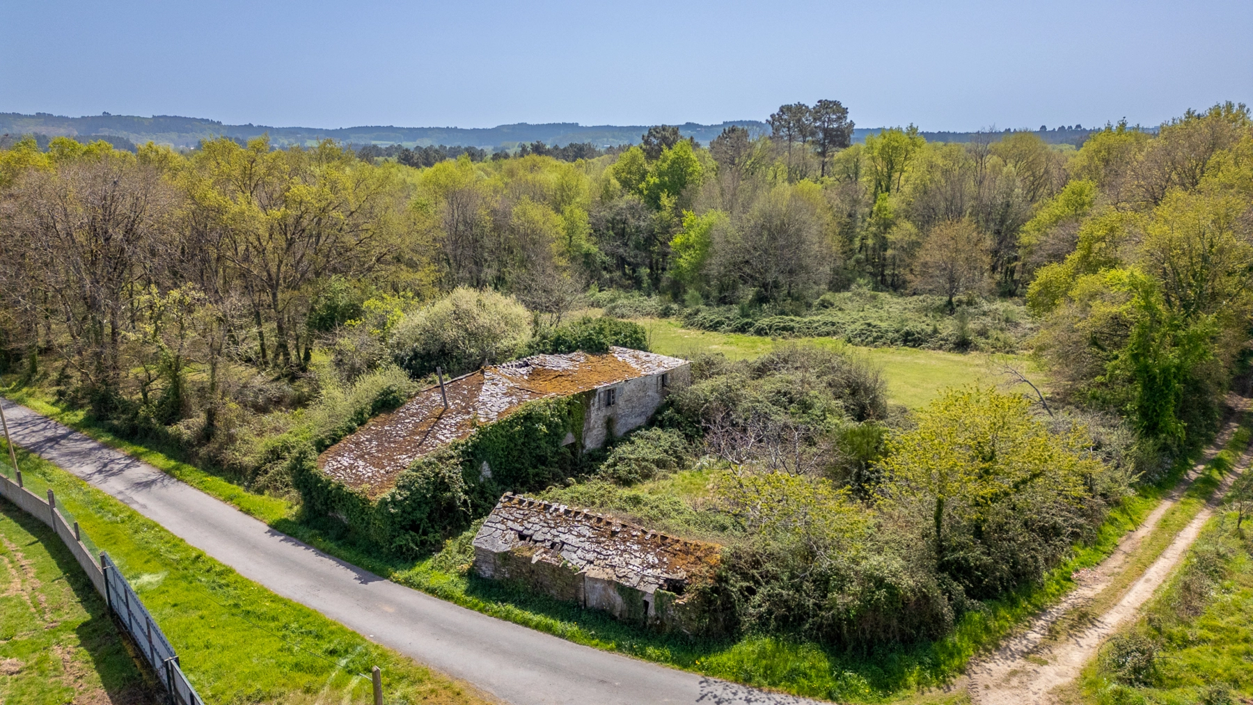 El conjunto incluye dos construcciones de piedra: la casa principal, de grandes dimensiones, y una edificación auxiliar de 39 m² situada a pocos metros de la vivienda. Ambas requieren restauración integral.