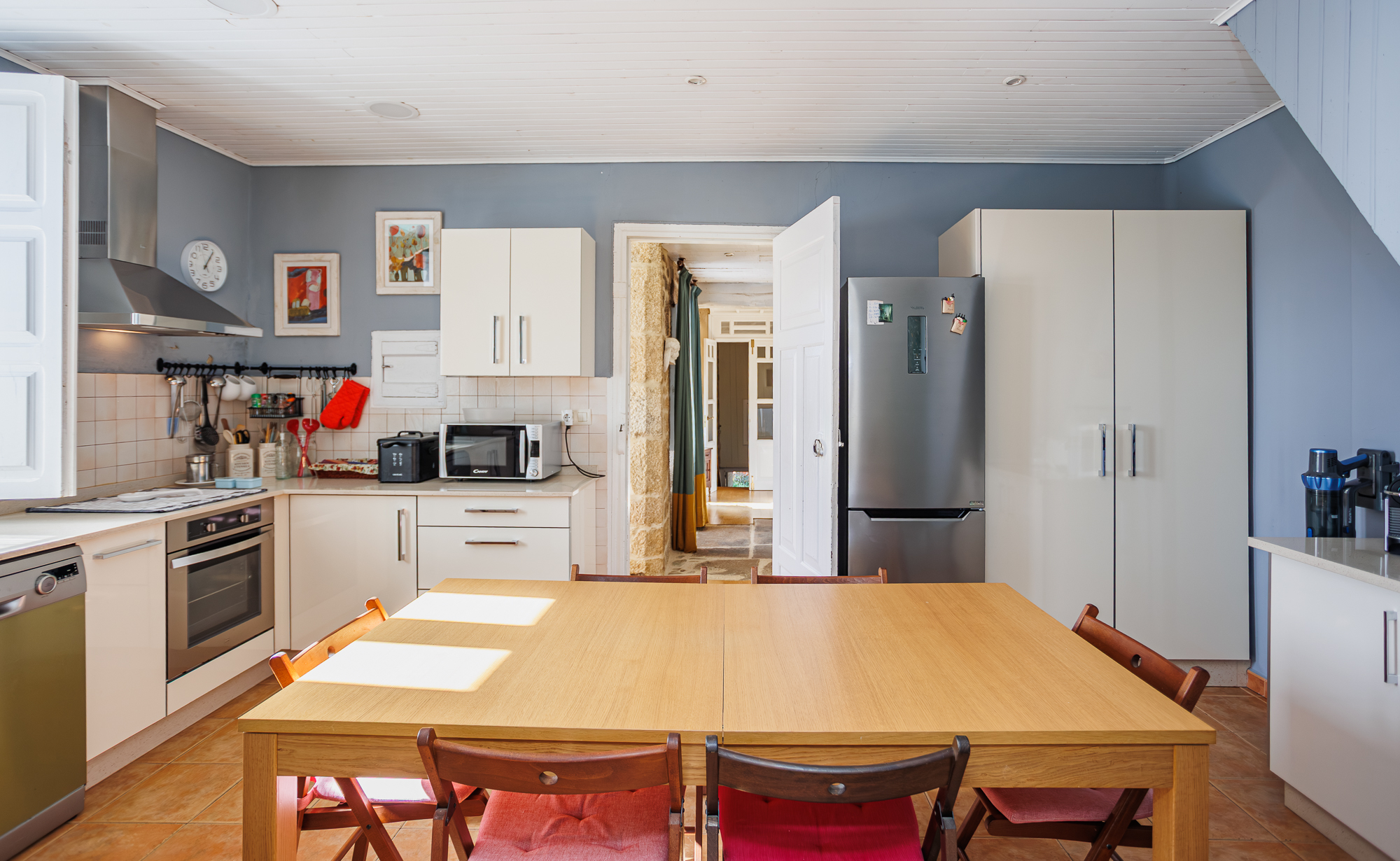 En la planta baja destaca una bonita sala de estar con suelo de tarima, vigas de madera y muros de piedra vista, un espacio con historia que en su día fue la escuela de la aldea. Incluye también una salita de estar independiente, el cuarto de la caldera y una zona de lavandería que conecta con las antiguas cuadras.