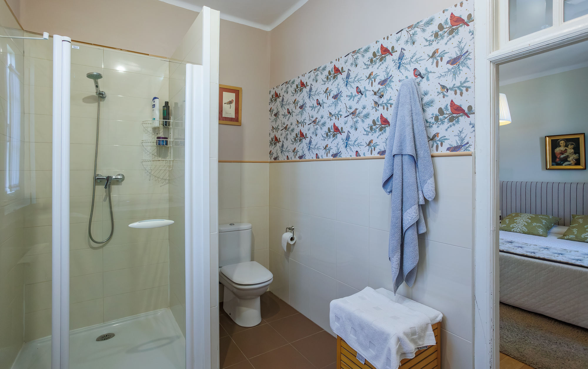 La planta superior es la principal y alberga los espacios de vivienda. En ella encontramos un zaguán de entrada, cuatro dormitorios amplios y luminosos —dos de ellos con baño en suite—, un cuarto de baño adicional, una cocina completamente equipada y dos amplios salones.